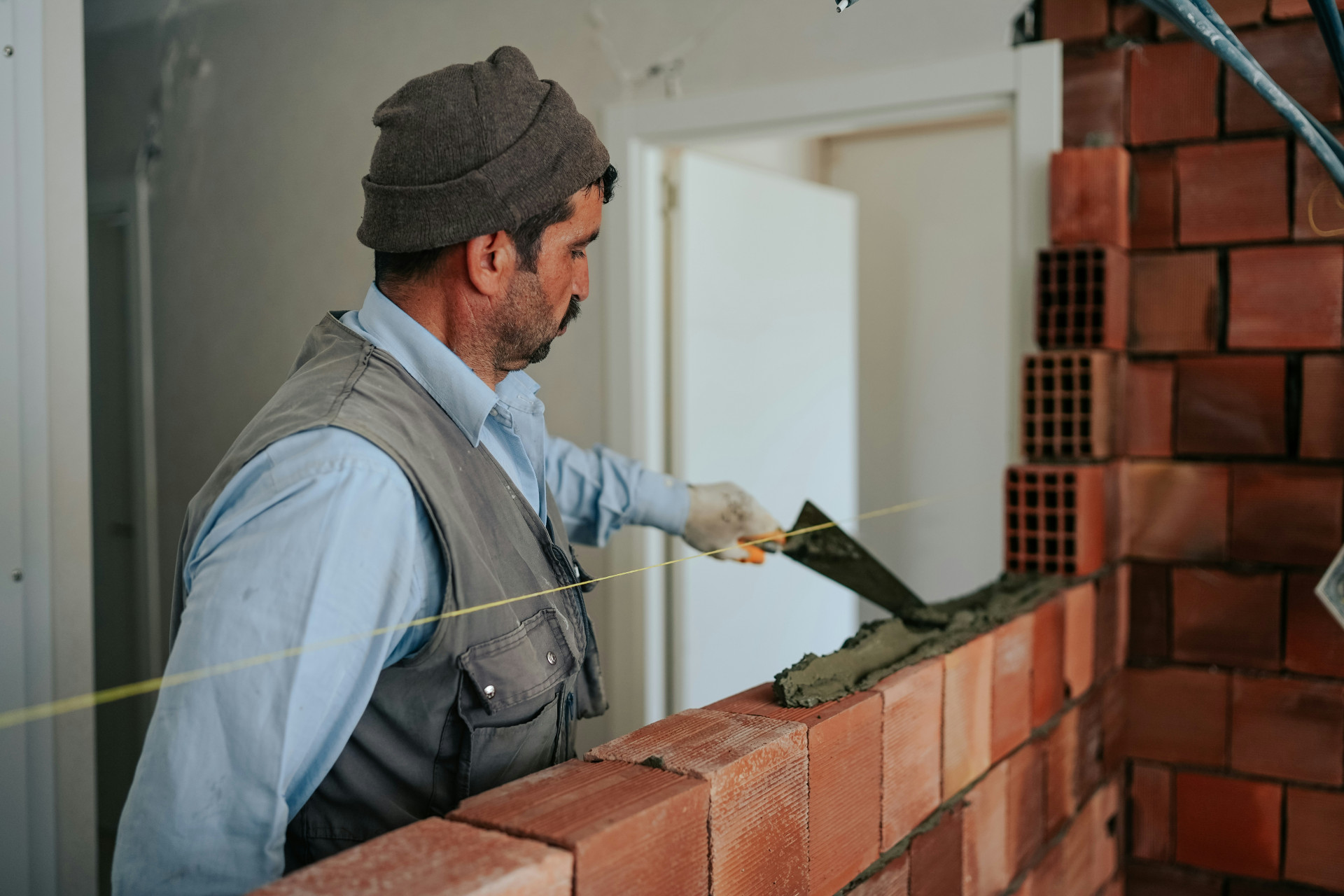 - Påfør ny mørtel. Brug en mørteltype, der passer til husets oprindelige fuger – for hård mørtel kan skade murstenene.